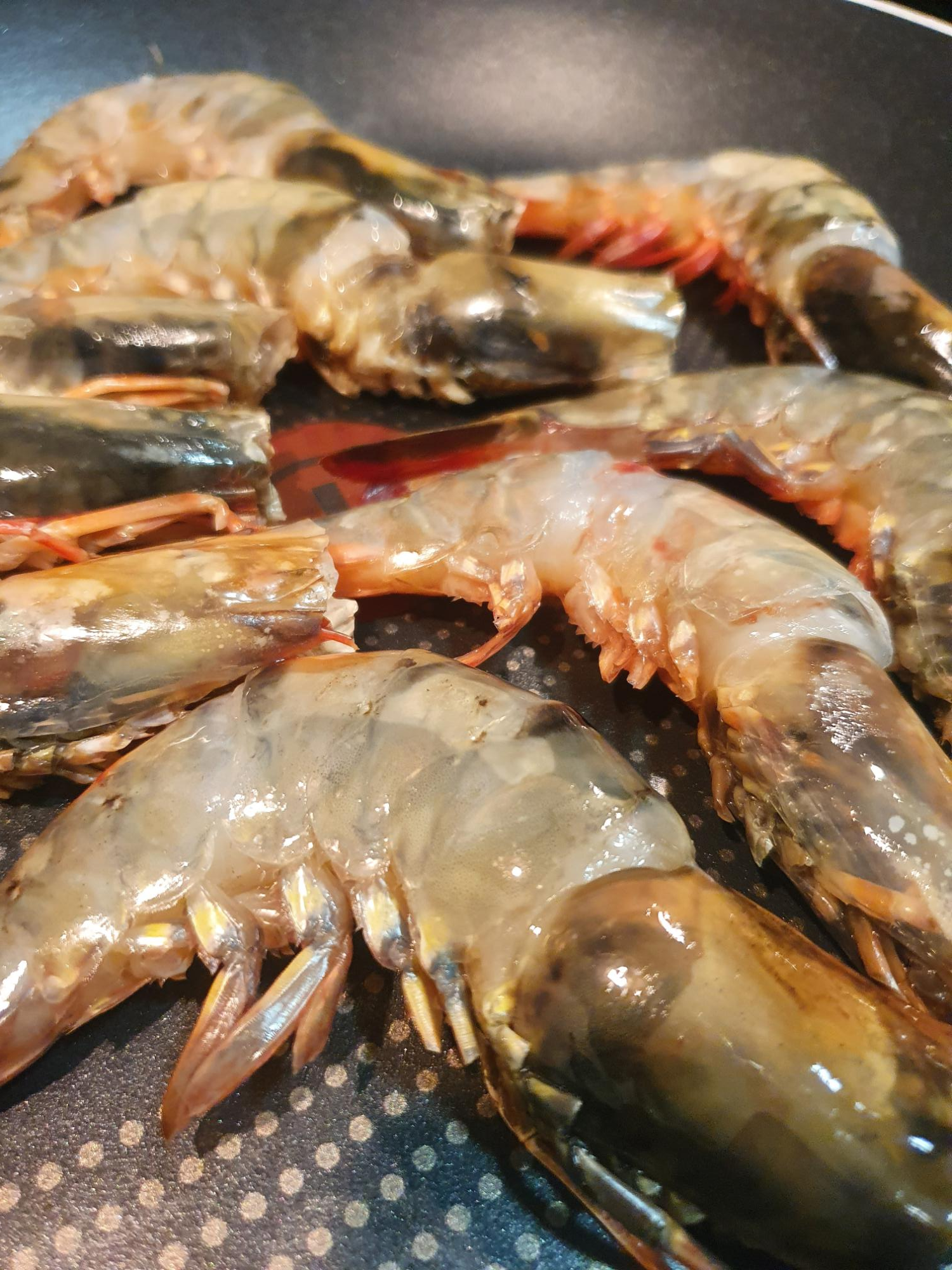 1. 손질한 블랙타이거새우는 후라이팬에 살짝 익혀줍니다.
